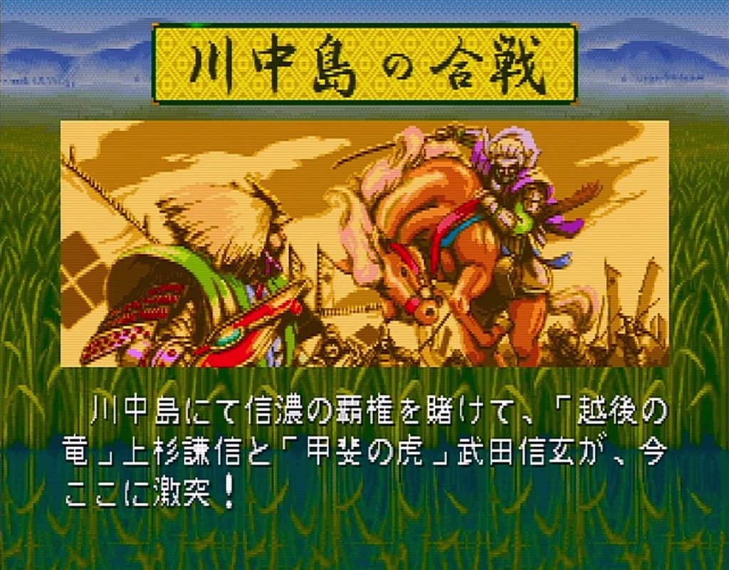 上杉と同様、川中島の合戦があります。イベント一枚絵は同じですが、その後の会話シーンは武田の方が充実した内容になっています。